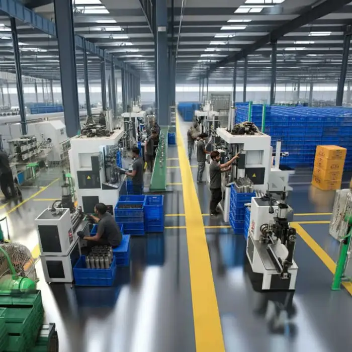 The production line includes key machines such as metal casting, electroplating, engraving, moulding, coating, cutting, forging, straightening, polishing, industrial furnace, and hydraulic press.