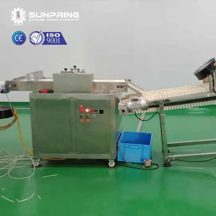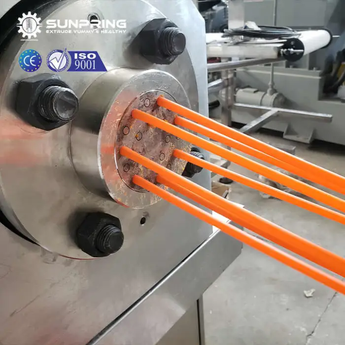 The machine is designed to process rice powder as the primary raw material to produce food-grade rice straws. Formulations may include binders or additives as recommended by the manufacturer.