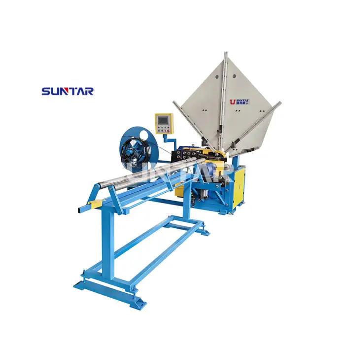 The SUNTAY HVAC Round Auto Sheet Metal Air Pipe Duct Steel Strip Mold is designed for efficiently producing spiral ducts used in HVAC applications, allowing for the creation of durable air pipes with precision.