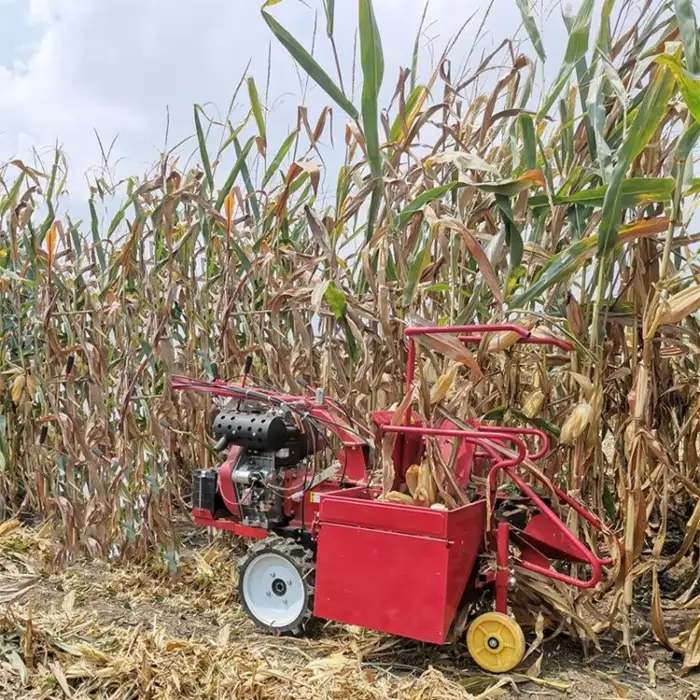 The SURRI Mini Tractor corn harvester is designed to collect crops from 1 row at a time.