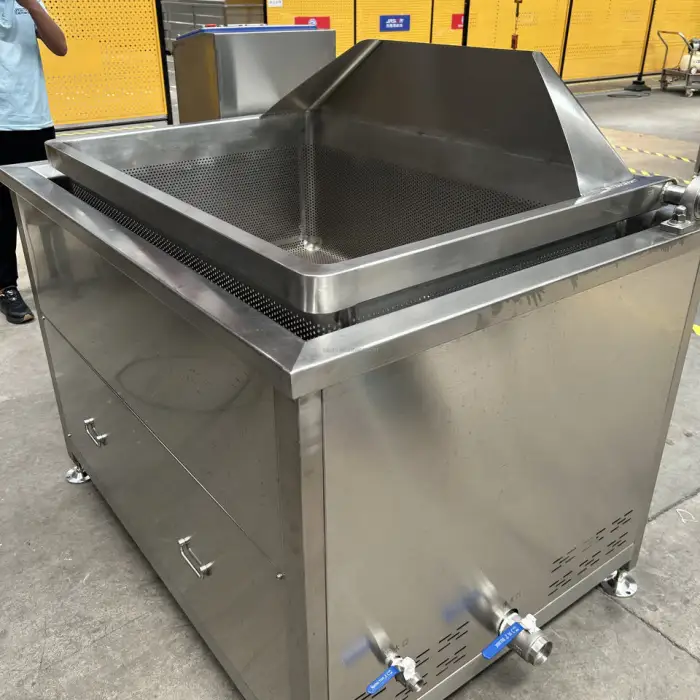 The fryer is designed to handle large quantities of food at once, making it efficient for busy kitchens.