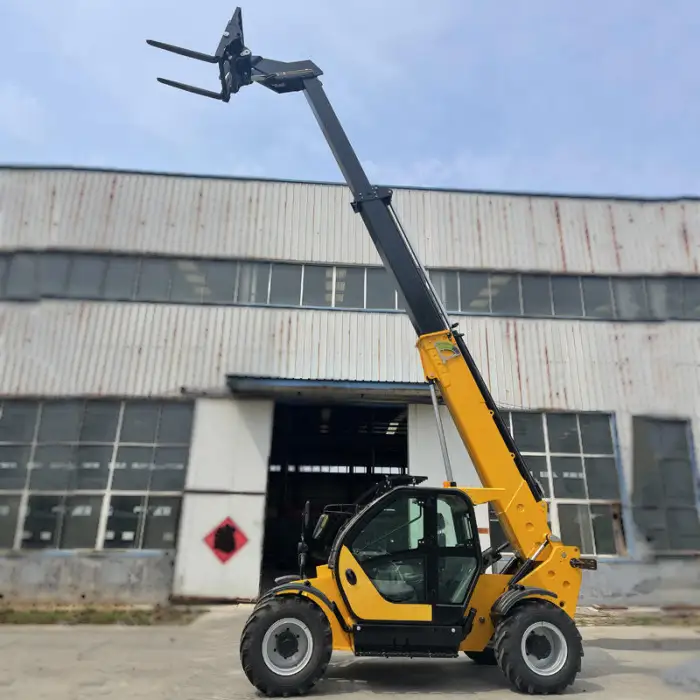 The T-109 Mini Telescopic Loader is built for off-road terrain adaptability, making it suitable for various environments including farms, construction sites, and uneven surfaces.