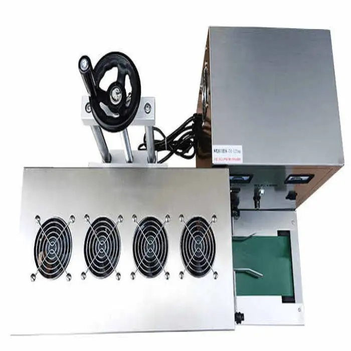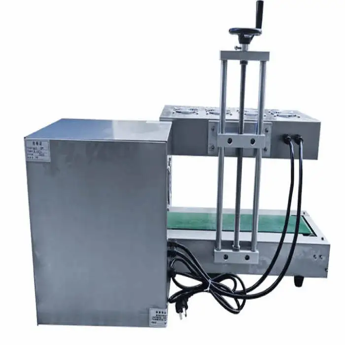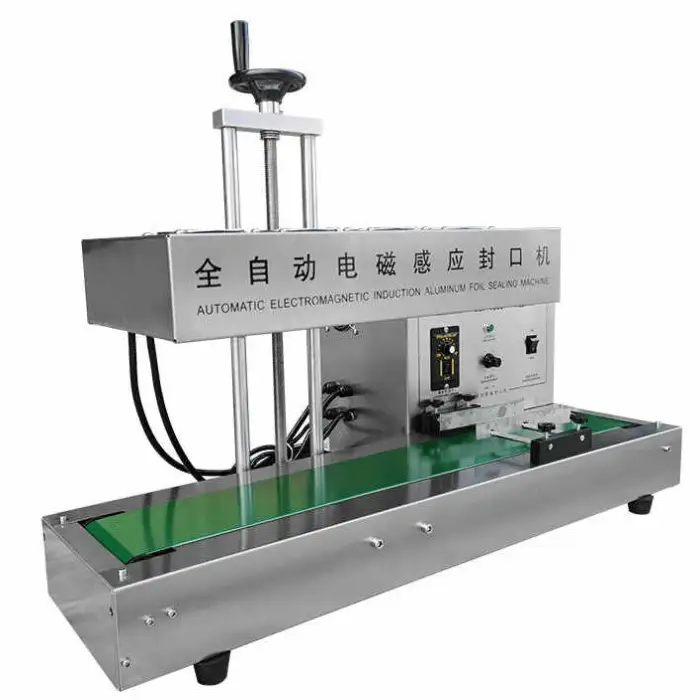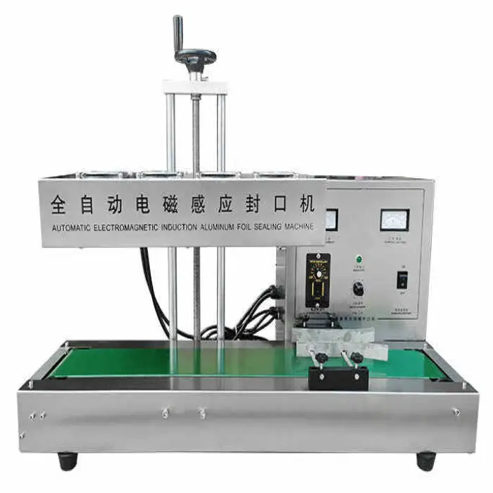 It is a compact, electric machine that uses electromagnetic induction to heat a foil liner or heat-sealable film at the container mouth, creating a hermetic seal. The machine generates an alternating magnetic field that heats the foil lining, melting the heat-activated adhesive and bonding the liner or film to the container.