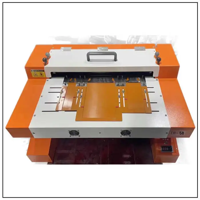 The TB-58L is a compact pocket folding creaser, creasing/shape and iron machine designed for precise creasing and shaping of fabric and paper. It uses infrared heating and adjustable temperature control to deliver professional-quality finishes for both hobbyists and small-scale production.