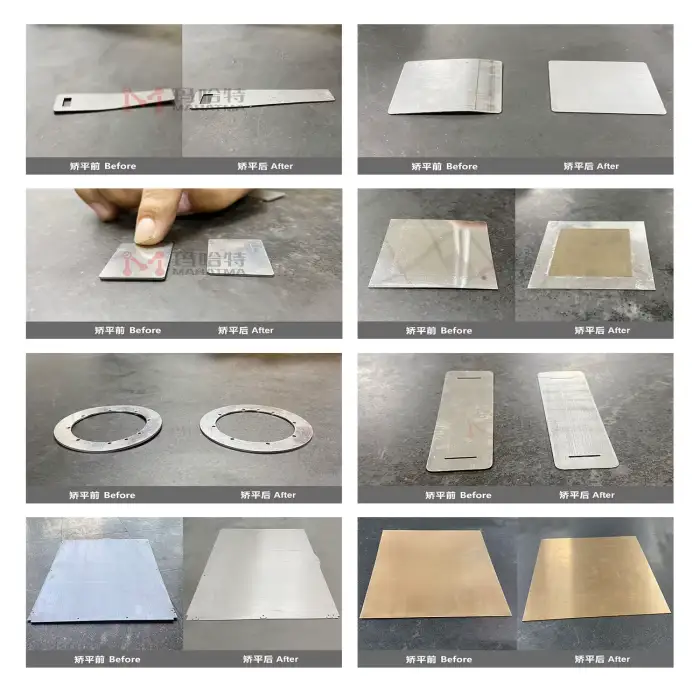 The machine is suitable for various metal straightening tasks, including sheet metal and steel bars.