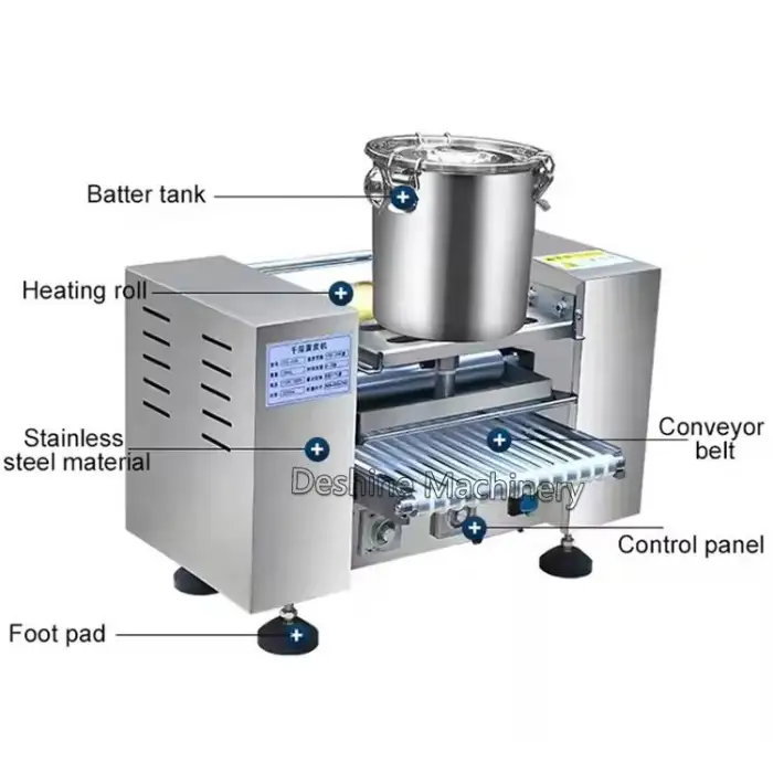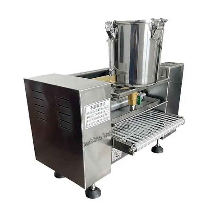 The machine has a capacity to produce between 100 to 300 pieces of crepe cake skins per hour.