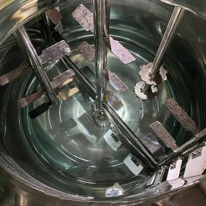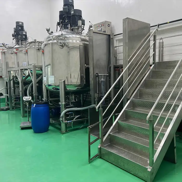 The machine uses a homogenizer mixer type for effective mixing and emulsification.