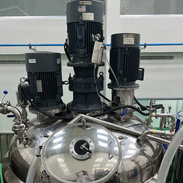 The machine is suitable for toothpaste manufacturing, cosmetic product processing, food and chemical mixing applications, and production of liquids with suspended solids.
