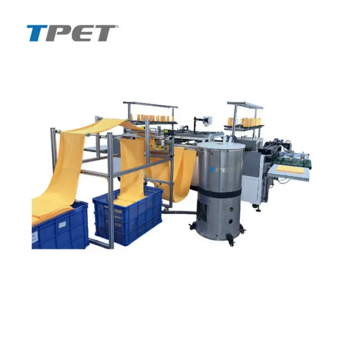 The TPET 4 Side Sewing Bath Towel Making Machine has a production capacity of up to 1,500 pieces per hour.