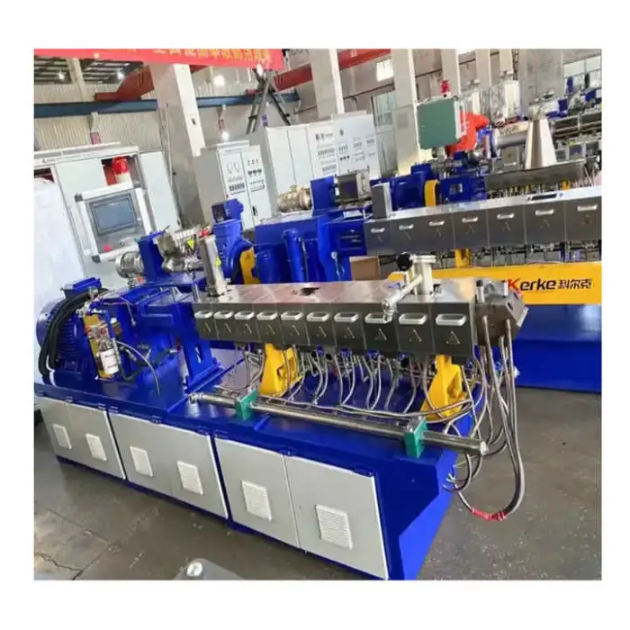 The extruder uses a double-screw co-rotating design.