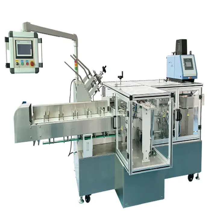 Size ranges are model- and configuration-dependent. The machine can be supplied or adjusted to accommodate many common pouch and carton dimensions — provide your minimum and maximum pouch and carton sizes to the supplier to confirm compatibility or for customization.