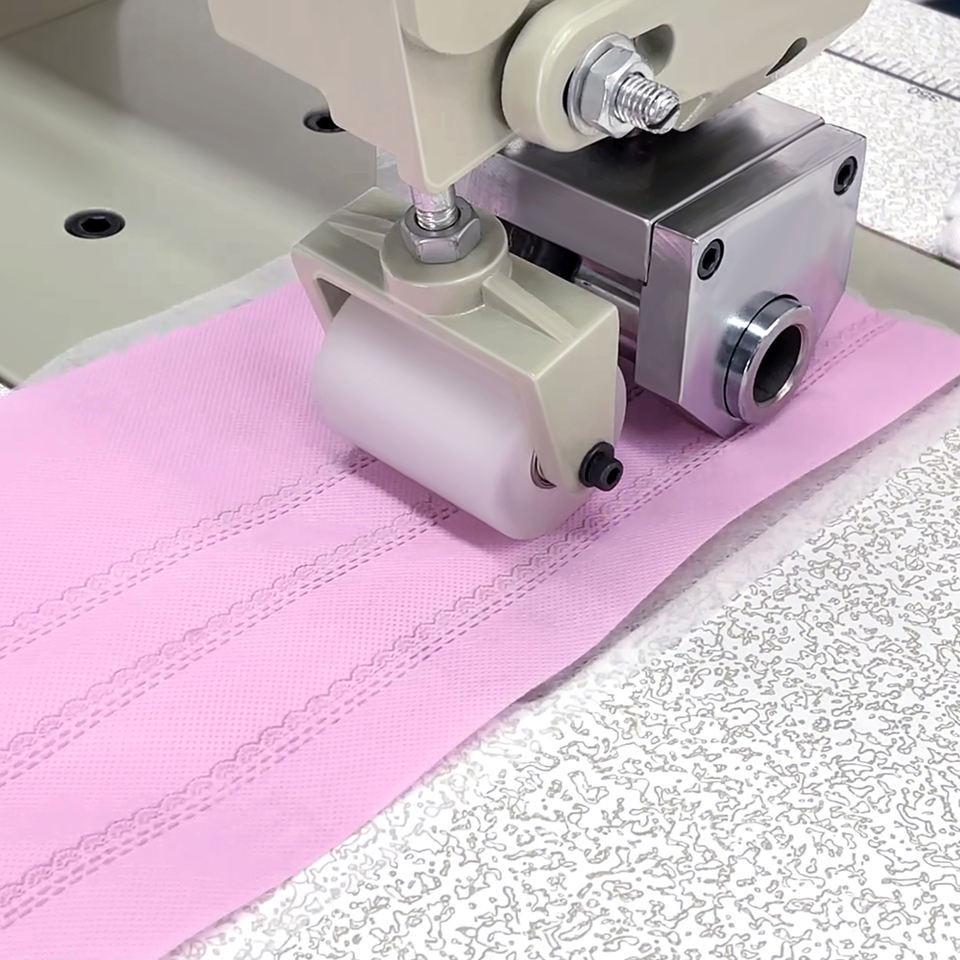 This machine is designed for sewing and sealing lace fabrics using advanced ultrasonic technology, creating strong seams without traditional sewing methods.