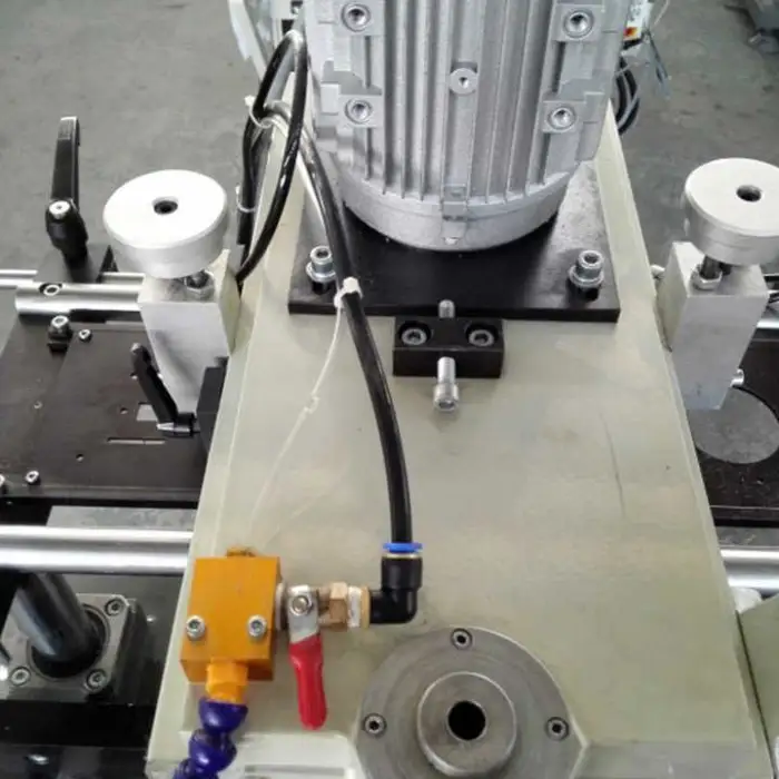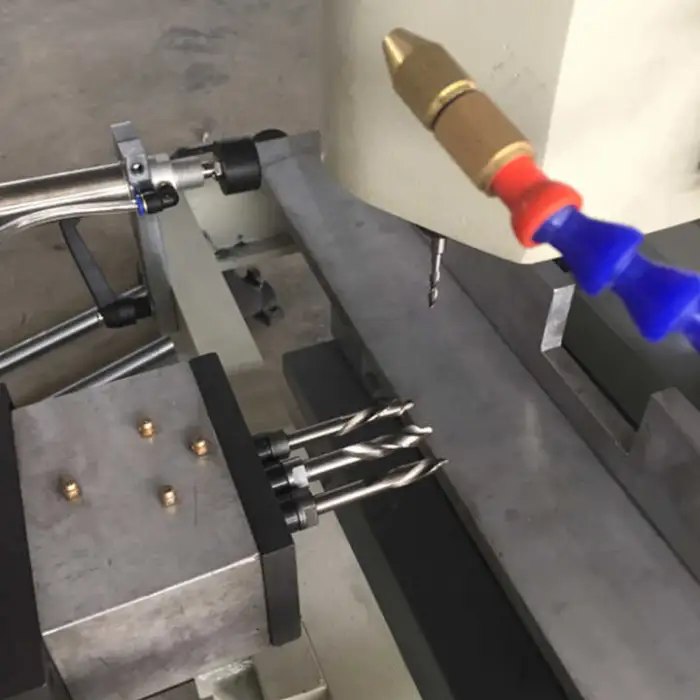 The machine can perform drilling and milling operations with precision on UPVC and aluminum.