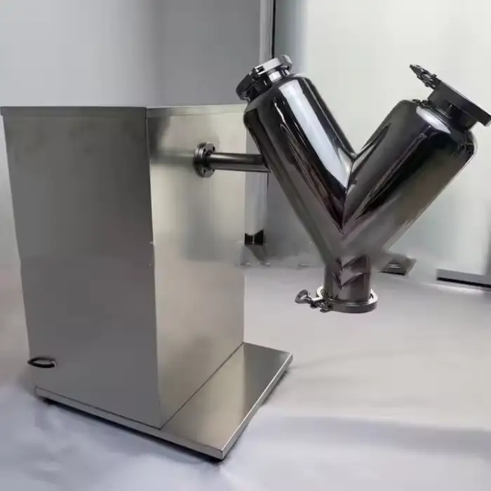 The V Type Blender features a vacuum mixer type, which enhances the mixing efficiency.