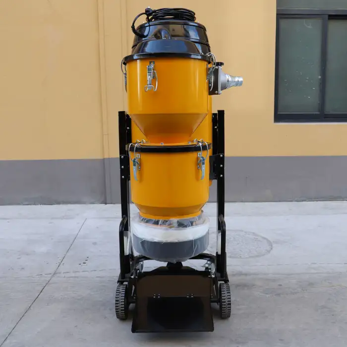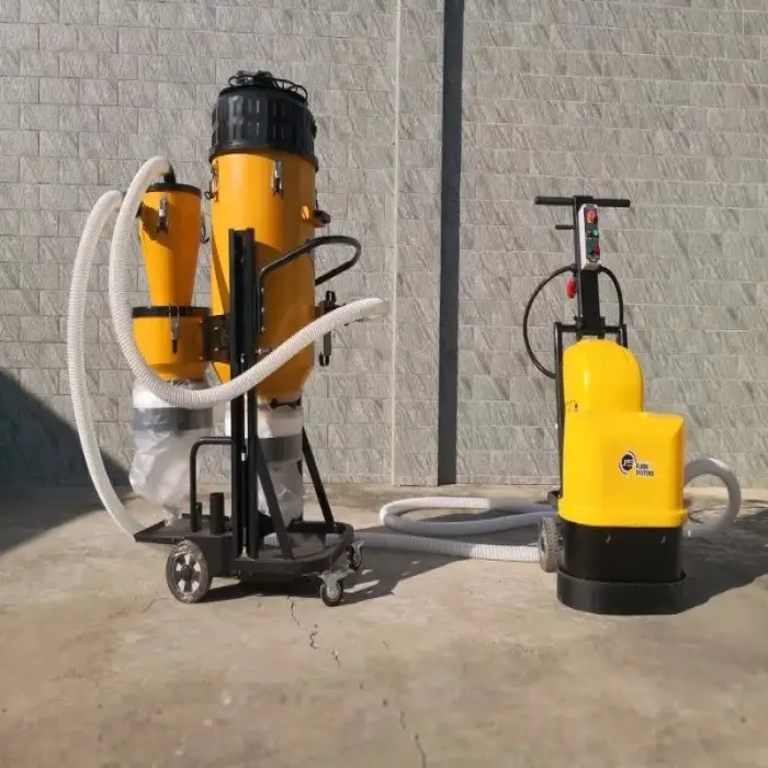 The cyclone filtration system uses centrifugal force to separate dust and debris from the air, allowing for efficient collection and minimal filter clogging.
