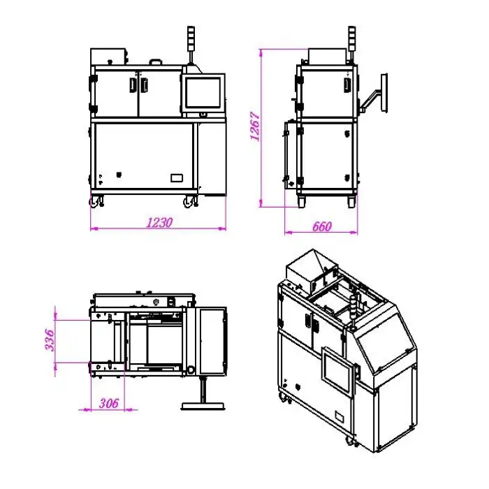 The machine has dimensions of 1230 mm in length, 660 mm in width, and 1267 mm in height.