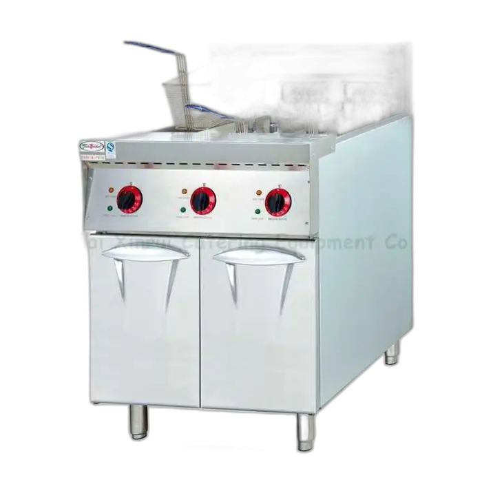 The fryer is constructed with durable materials designed for commercial use, ensuring longevity and reliability.