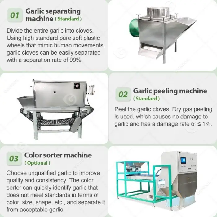 The peeling rate is over 98%, ensuring high efficiency in garlic processing.