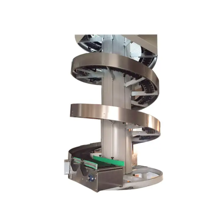 Industries such as machinery repair, food and beverage, logistics, packaging, bottling, and distribution centers can all benefit from using the Vertical Lifting Conveyor.