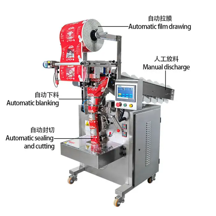The Vertical Packaging Machine is designed to package both liquid and solid particles, making it suitable for powders, pastes, granules, liquids, and solids.