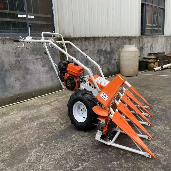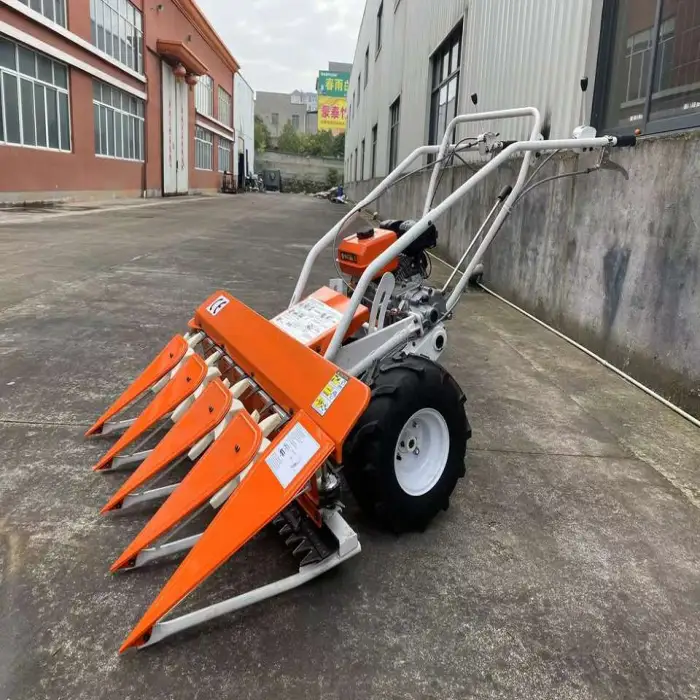 The Walking Tractor Reaper Mini Rice Wheat Harvester has an engine power ranging from 6 to 7 HP.