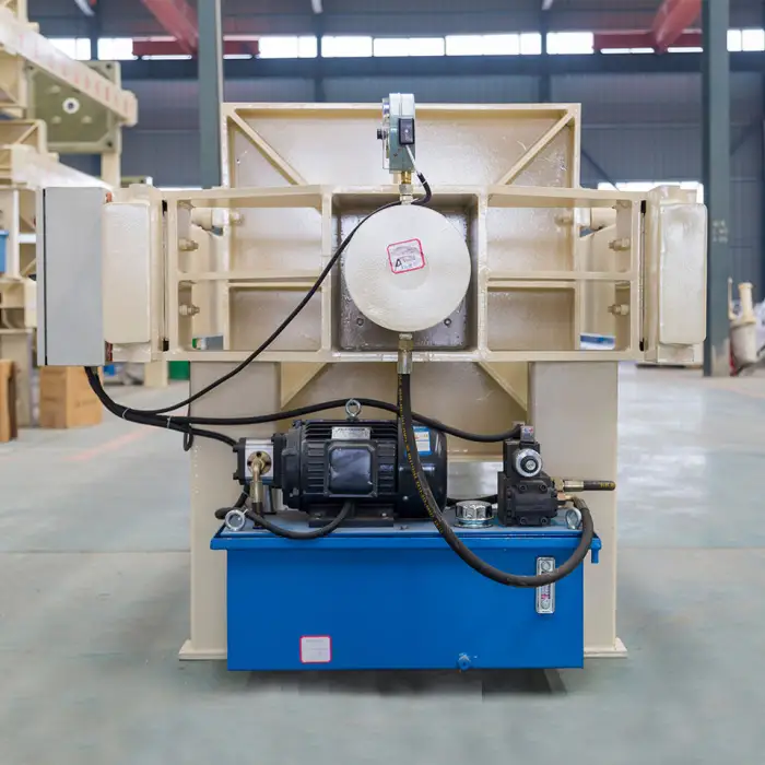 The closing method of the filter press is automatic and is powered by a hydraulic cylinder for reliable sealing.