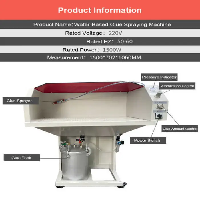 The Water Based Latex Glue Spraying Machine operates on a voltage of 220V.