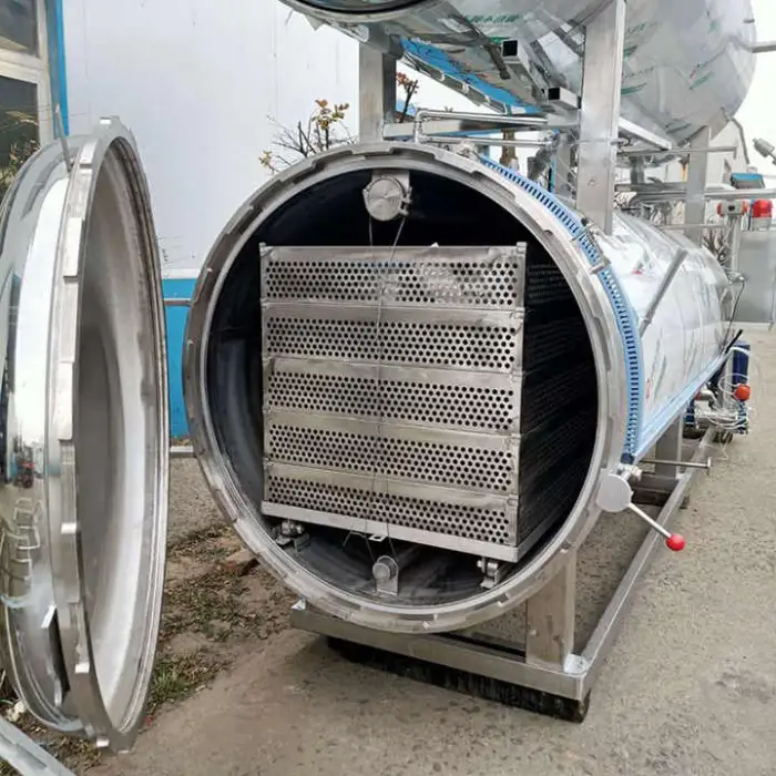 It is a fully automatic juice sterilizer retort designed for commercial sterilization and preservation of jams, juices, pouched foods and other food products using steam/water heating methods.