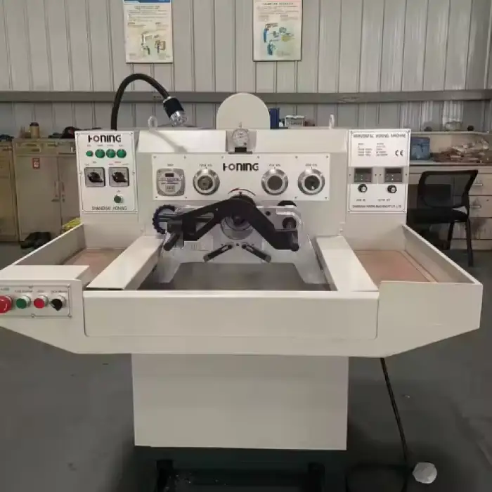 Key features include high precision honing for smooth finishes, flexible manufacturing options, durable components for long-lasting performance, a compact design for easy integration, and efficient power consumption.