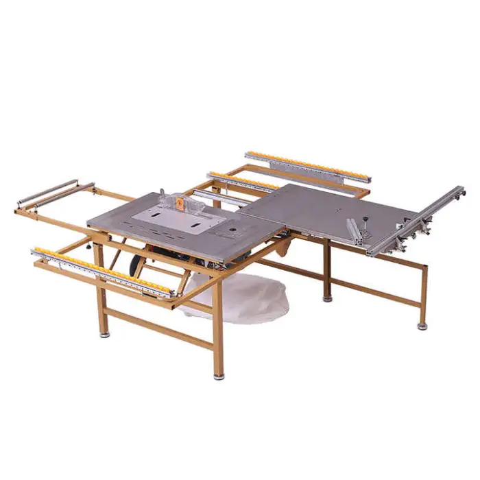 This table saw is specifically designed for cutting wood-based panels, making it ideal for various woodworking materials.