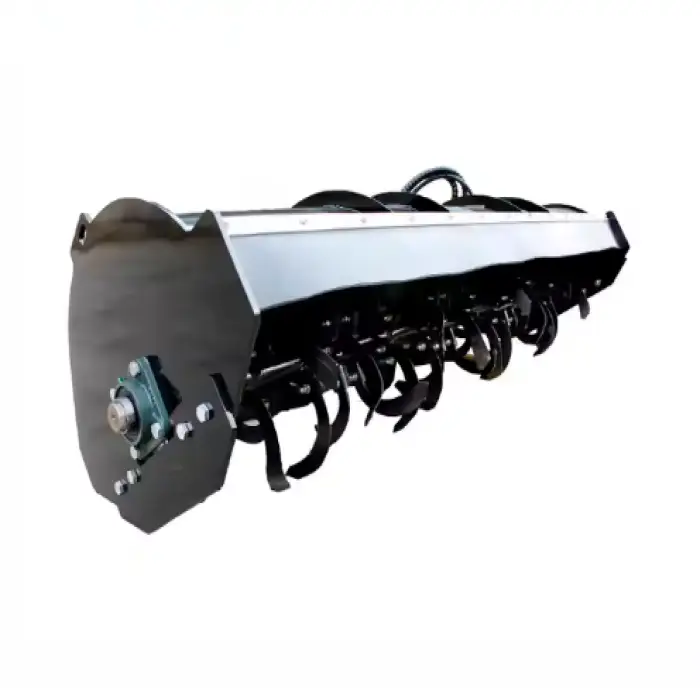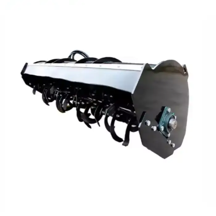 The XCMG X0511 Mini Skid Steer Tiller Cultivator is equipped with a powerful diesel engine, which provides effective tilling capabilities.