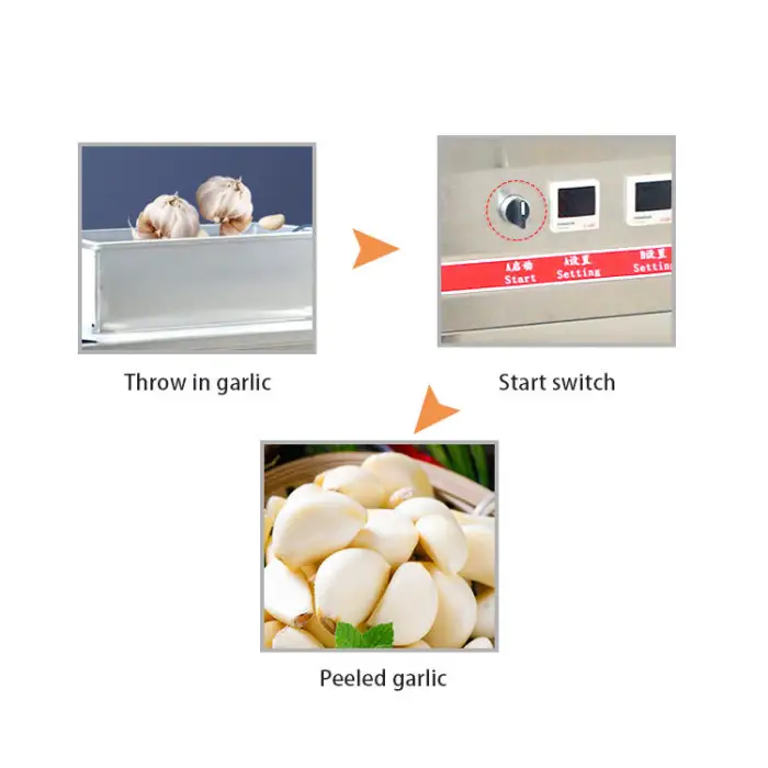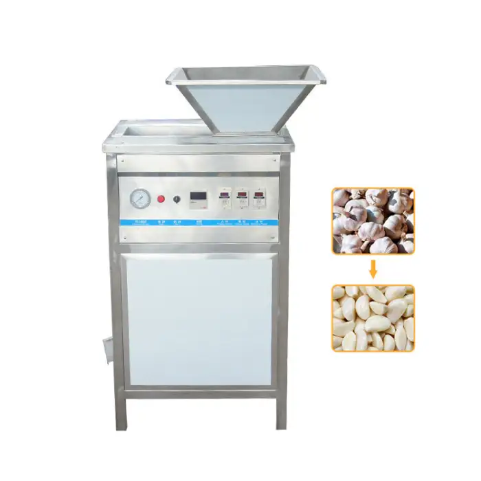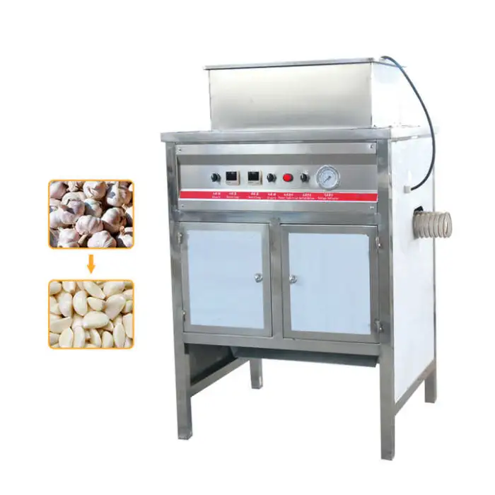 The machine uses a dry peeling method that effectively removes the skin from garlic cloves without damaging them.