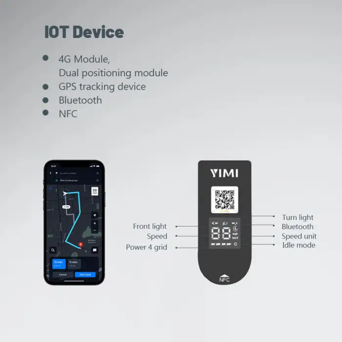 The scooter includes Bluetooth, electronic, and digital features for smart connectivity.