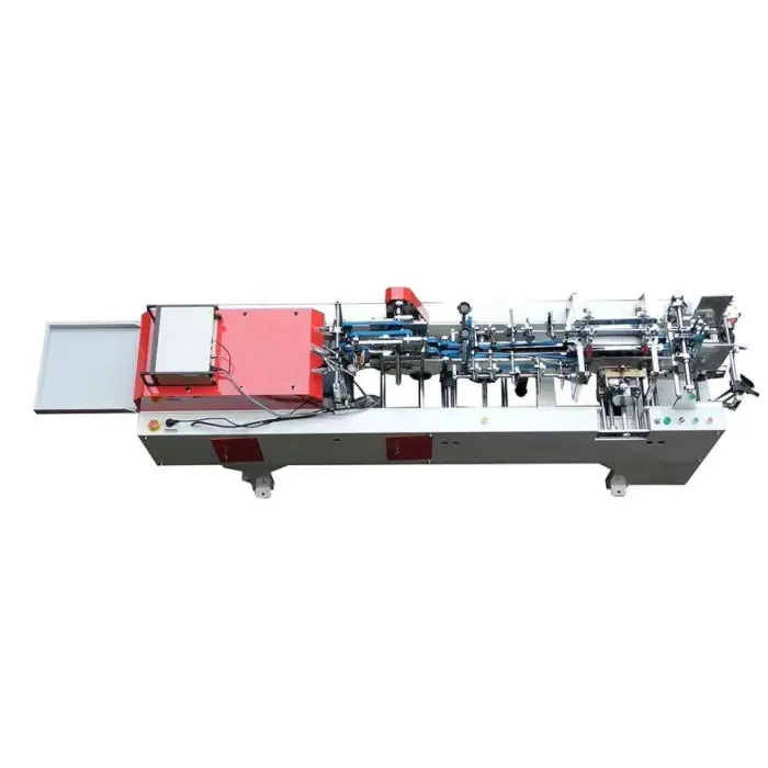 Regular maintenance includes cleaning the glue application areas, checking the automatic feeding system, and ensuring all moving parts are lubricated.