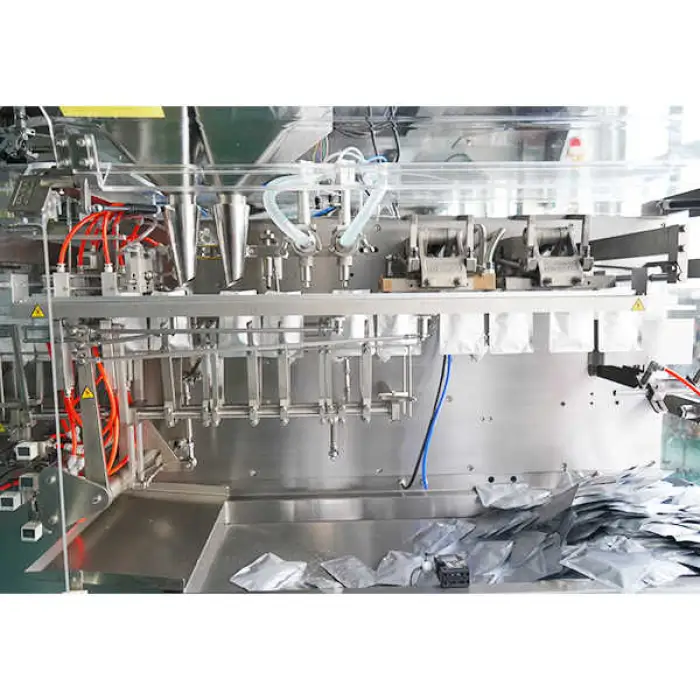 The machine features high accuracy mechanisms that ensure precise filling and sealing for each package.